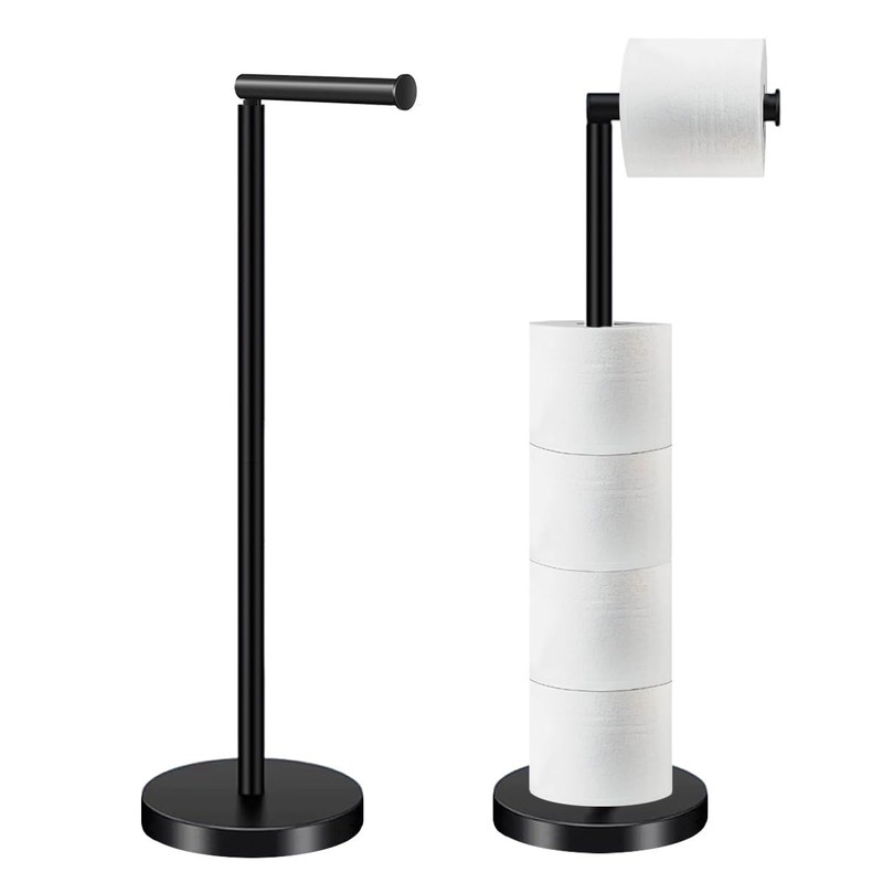 - MODERN and MINIMALIST DESIGN: This standing toilet roll holder features a clean, simple, and distinctive design. The sleek appearance adds a touch of modernity and elegance to your bathroom, complementing various decor styles.