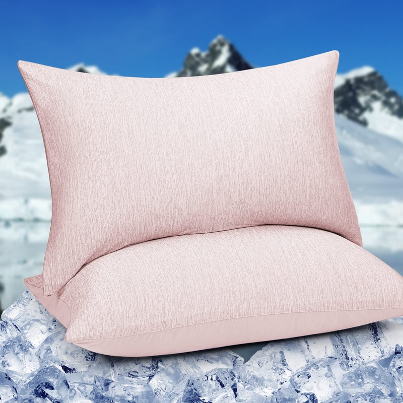 HOMFINE 2 Pack Cooling Pillow Cases- Breathable Soft Cold Pillowcases with Double Side Cooling Fiber (Q-Max>0.45) for Hot Sleeper Night Sweat, Hidden Zipper (50x75cm, Pink)