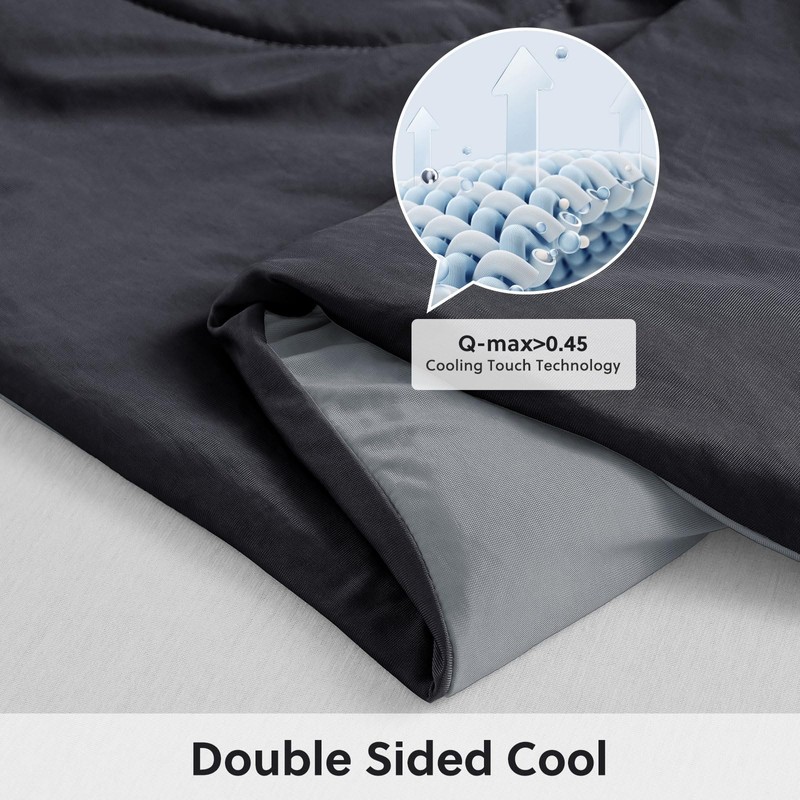 HOMFINE Cooling Comforter Japanese Double-Sided Cold Tech Fabric Cooling Blanket for Night Sweats Hot Sleepers, Q-Max 0.45 Soft Breathable Silky Smooth Lightweight Black Summer Comforter King