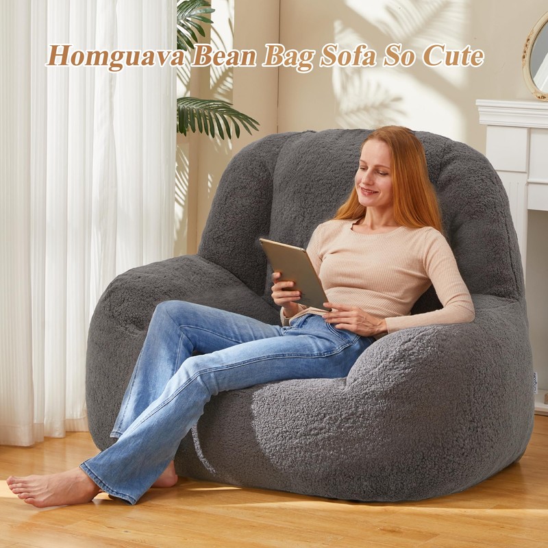 Homguava Bean Bag Chair Sherpa Bean Bag Lazy Sofa Beanbag Chairs for Adults with High Density Foam Filling Modern Accent Chairs Comfy Chairs for Living Room, Bedrooms