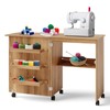 HOMGX Folding Sewing Table, Multifunctional Craft Table w/Storage Cabinet Shelves & Lockable Wheels for Small Space, Compact, Craft Station & Side Desk (Natural, 16" D x 46" W x 31" H)