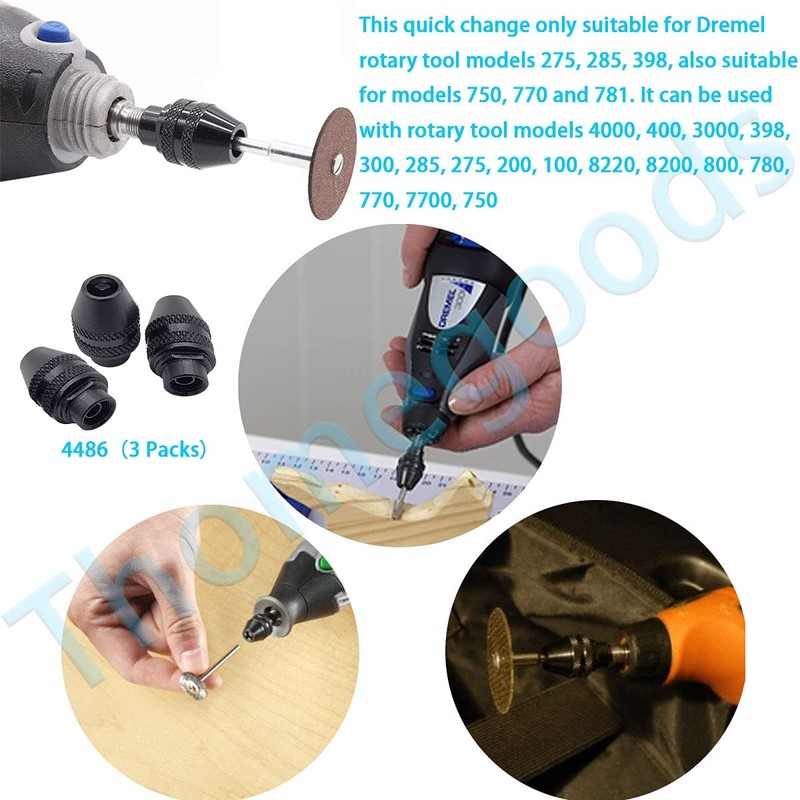 Homhelar 3Pcs Multi Quick Change Keyless Chuck Replacement for Dremel 4486 Rotary Tools 3000 4000 7700 8200