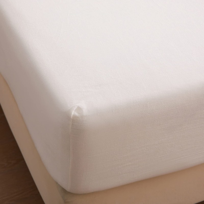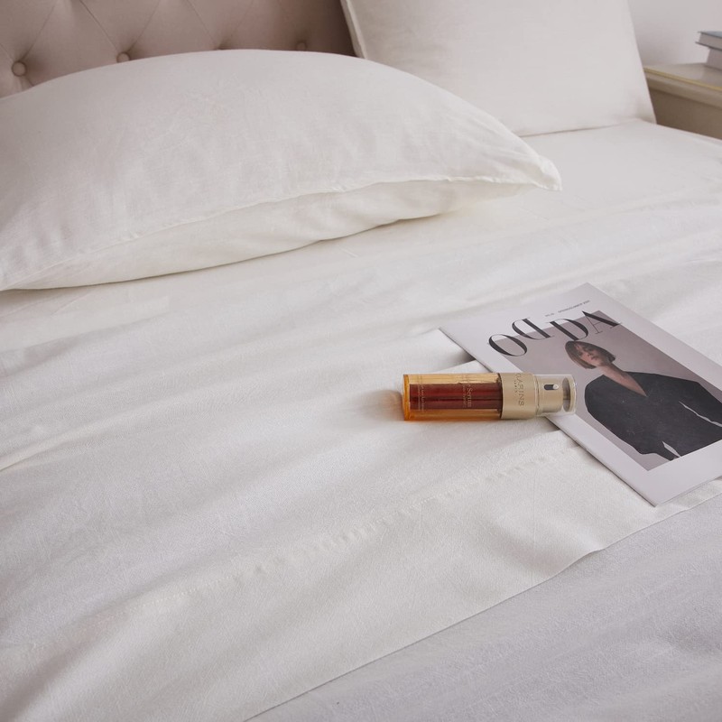 HOMICIA Stonewashed Linen Sheets Set- King Linen Bed Sheet, 4 Pcs Breathable Cotton Bed Sheets, Linen Cotton Sheets for All Seasons(Off-White,King)