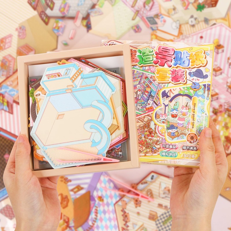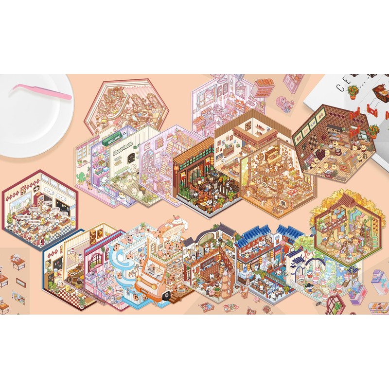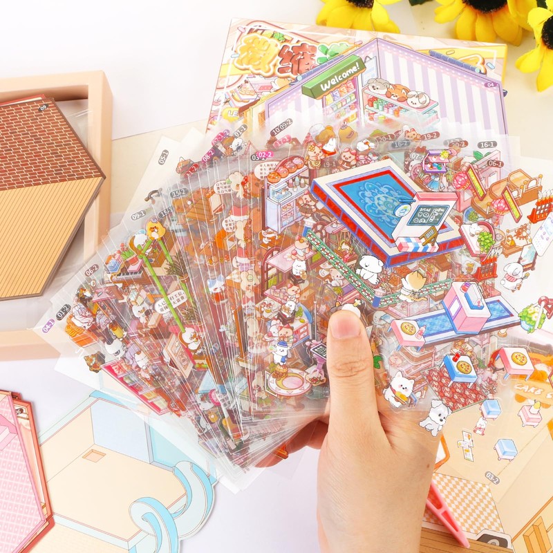 HOMICO 20 Designs 3D Sticker Scene Make Your Own House Shop DIY Stickers with Tweezers Cute Animals Stickers 3D Miniature Scene Stickers