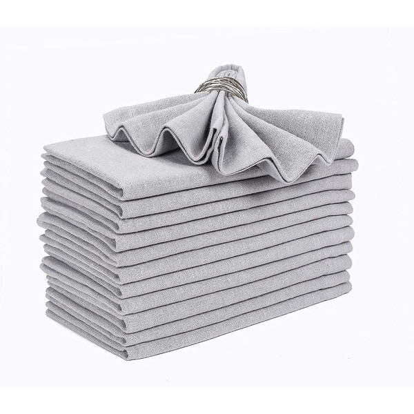 HOMIDATE Cloth Napkins 100% Cotton 18x18 inch,Light Grey, Set of 12,Mitered Corners, Generous Hem, Machine Washable,Cocktails, Dining Table, and Everyday Use