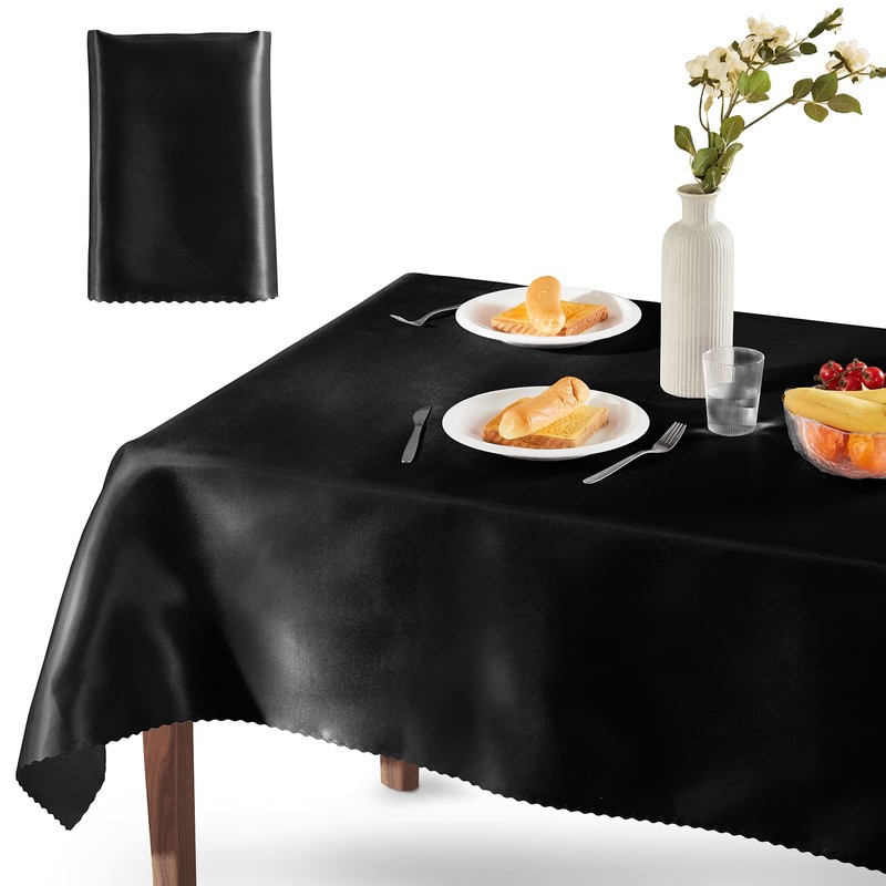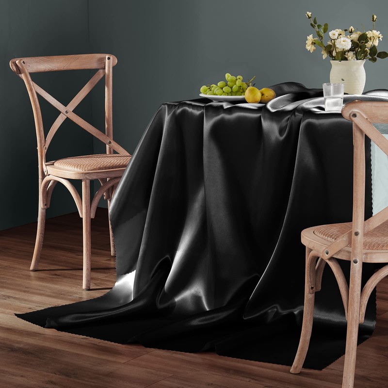 - PACKAGE CONTENT - 1 x Black Satin Tablecloth, Size: 60 x 84 Inches / 152.4cm x 213.3cm, rectangle wedding tablecloth suitable for rectangular table that can accommodate approximately 6-8 people. The satin table cover can also be used as decoration of hotel, family restaurant, kitchen.