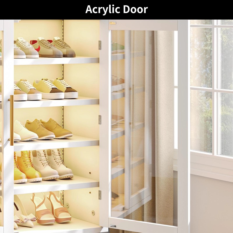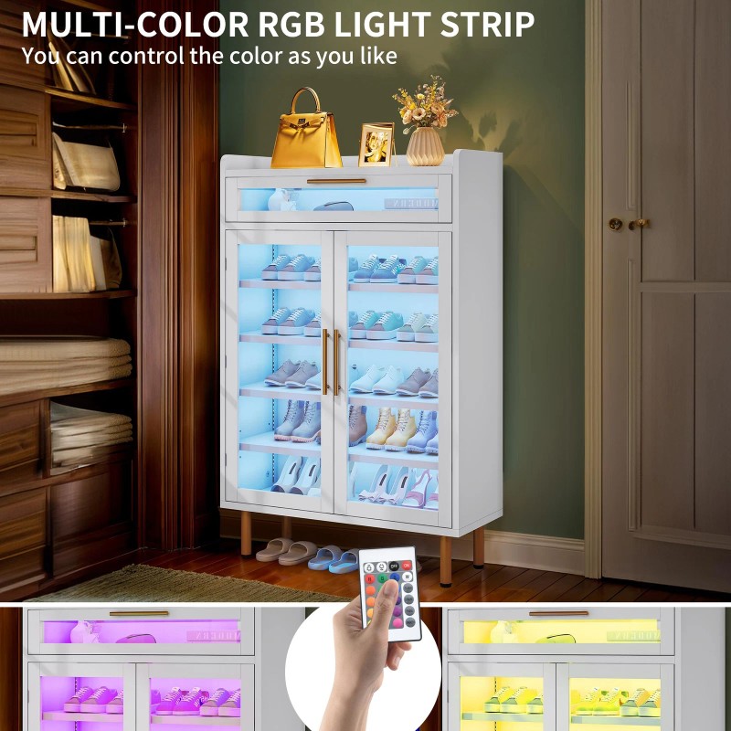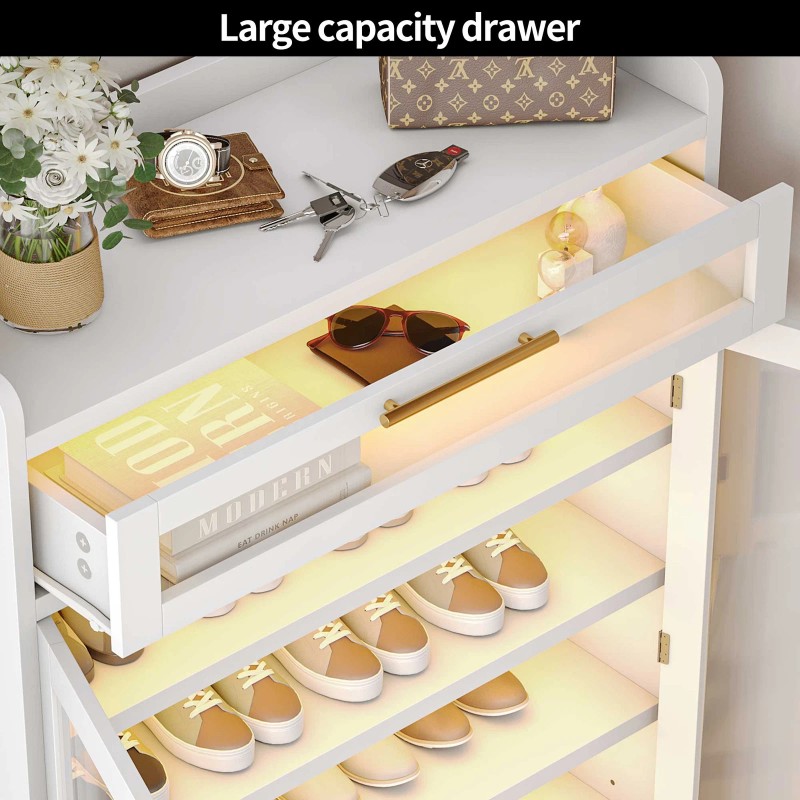 HOMIFLEX Acrylic Shoe Cabinet with Drawer LED Lights Shoe Rack for Entryway Living Room