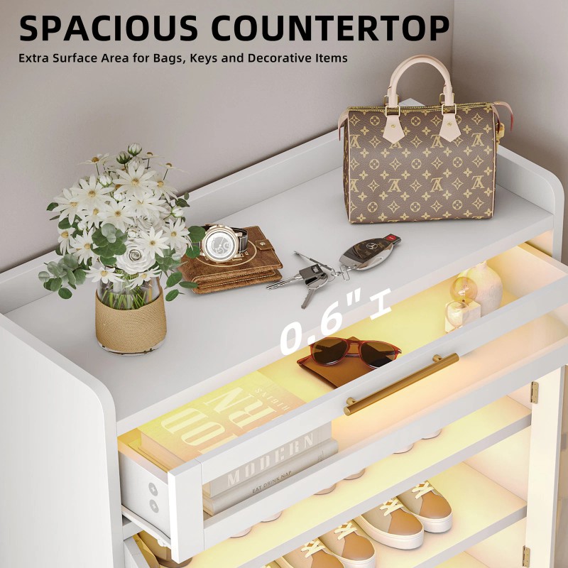 Step into LED wonderland:- With enchanting LED lights, this shoe storage cabinet becomes the star of your space. Control it effortlessly with a remote, lost in the cozy world while you lounge on your couch.