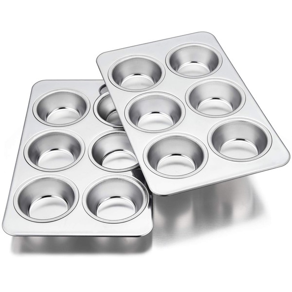 Homikit 2 Pack Muffin Tray, 6-Hole Muffin Tin Moulds Cupcake Baking Tray Pan, Stainless Steel Bakeware for Yorkshire Pudding/Brownie/Mince Pie/Bun, Healthy & Non-Toxic, Dishwasher Safe