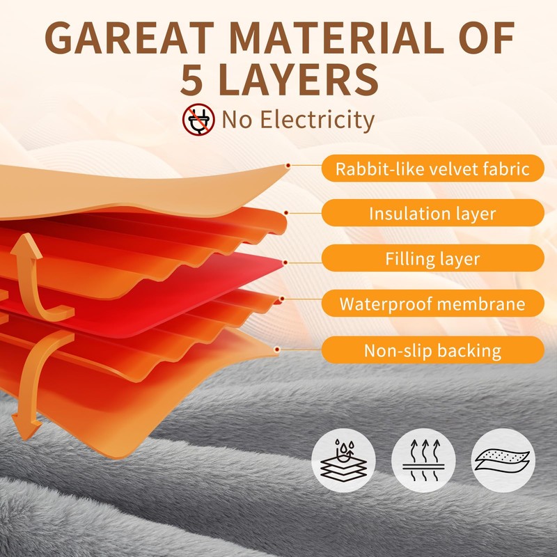 - SUPER SOFT FABRIC: The pet self-heating bed is made up of five layers of material, including rabbit-like velvet fabric, insulation layer, filling layer, waterproof membrane, non-slip backing, which makes the mat soft and comfortable, waterproof and non-slip. This also provides a very comfortable sleeping experience for pets.