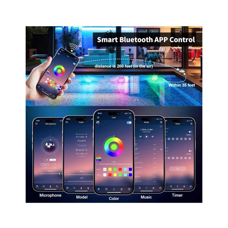 🏆Smart APP Control - Scan and download applications, and connect signal receivers to the phone, making it very easy to use and operate, eliminating the need for simple remote controls. Homly's outdoor swimming pool lighting kit has unlimited custom colors that can flash synchronously with music or even your voice, and has multiple breathing screen flashing modes. You can set the working time to automatically turn it on/off. On the night of swimming, you are the center of attention for everyone.
