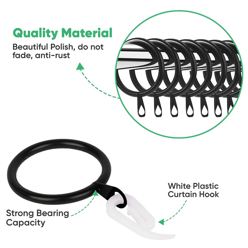 - Durable and Bearable: The premium rust-resistant black coating makes these curtain rings durable to last longer and strong enough to hold heavy curtains or drapes, curtails the slipping of heavy droppings and does not deform