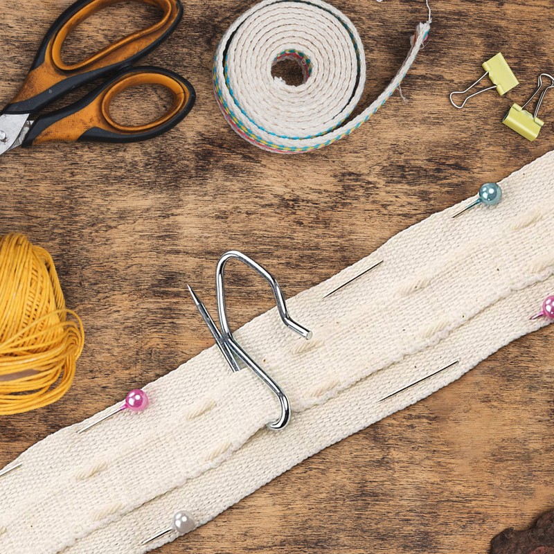 - Strong & Sturdy: Hommakr metal pin hooks can be used with curtain header tape and will fit through a variety of thicknesses to achieve the pleat option of your choice