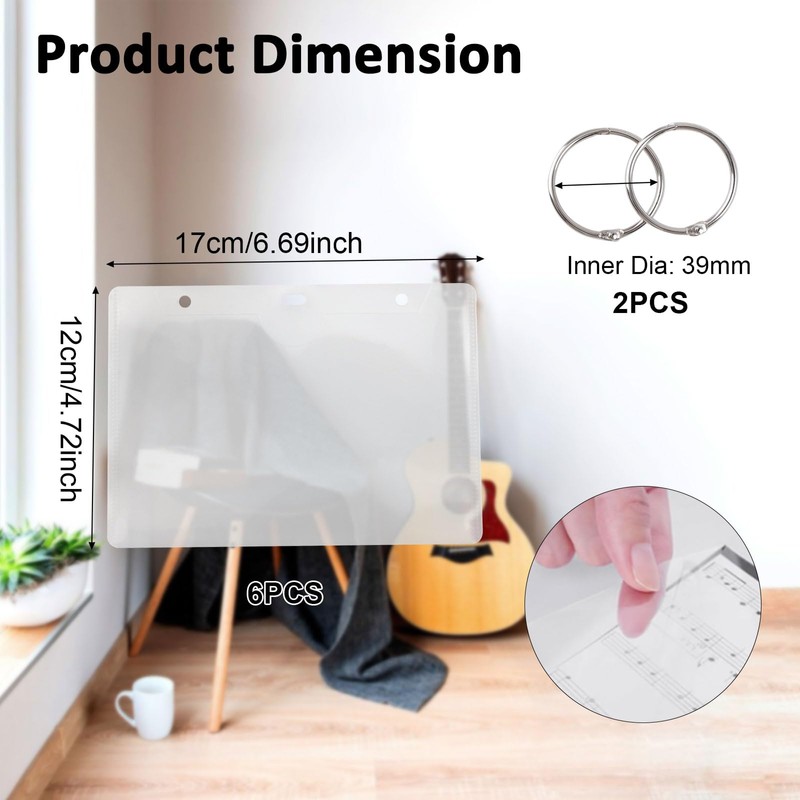 • Size Information: The size of the flip page is approximately 17*12cm, 6pcs, with 2 holes, suitable for most sheet music. Small and lightweight, transparent packaging for easy cleaning suitable for outdoor performances and travel, so that you can enjoy the music without worrying about having to store the sheet music after us