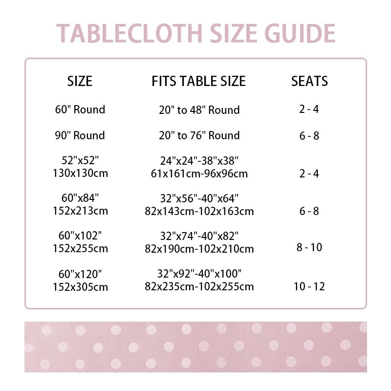 - Easy To Care-- HommxJF Polka Dot Satin Table Cloth can be used multiple times and does not fade easily,Machine wash in cold and Tumble dry low,it will be like colors. Do not iron, dry clean or bleach. If there are stains in use, such as coffee or soy sauce accidentally dripping on the tablecloth, you can quickly wipe them with a wet cloth, so that the stains can quickly disappear and avoid penetration.