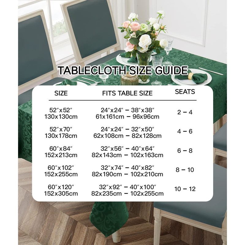 - Easy To Care-- HommxJF Jacquard Satin Tablecloth can be used multiple times and does not fade easily,Machine wash in cold and Tumble dry low,it will be like colors. Do not iron, dry clean or bleach. If there are stains in use, such as coffee or soy sauce accidentally dripping on the tablecloth, you can quickly wipe them with a wet cloth, so that the stains can quickly disappear and avoid penetration.