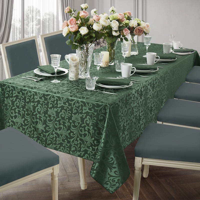 HommxJF Scroll Damask Jacquard Rectangle Green Tablecloth 60" 120",Wipeable Table Cover for Dining Table, Buffet Parties and Camping