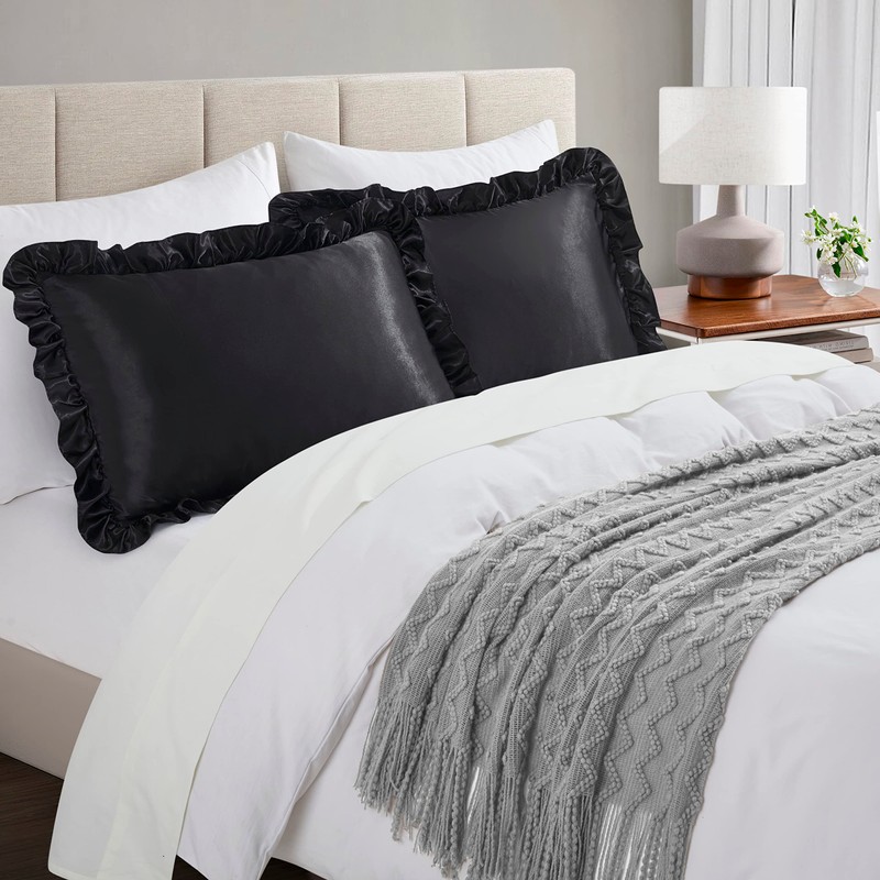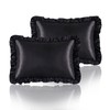 HommxJF Silky Satin Ruffled Pillow Cases for Hair and Skin,Black Silk Pillowcases Queen Set of 2 with Envelope Closure Princess Room Decoration