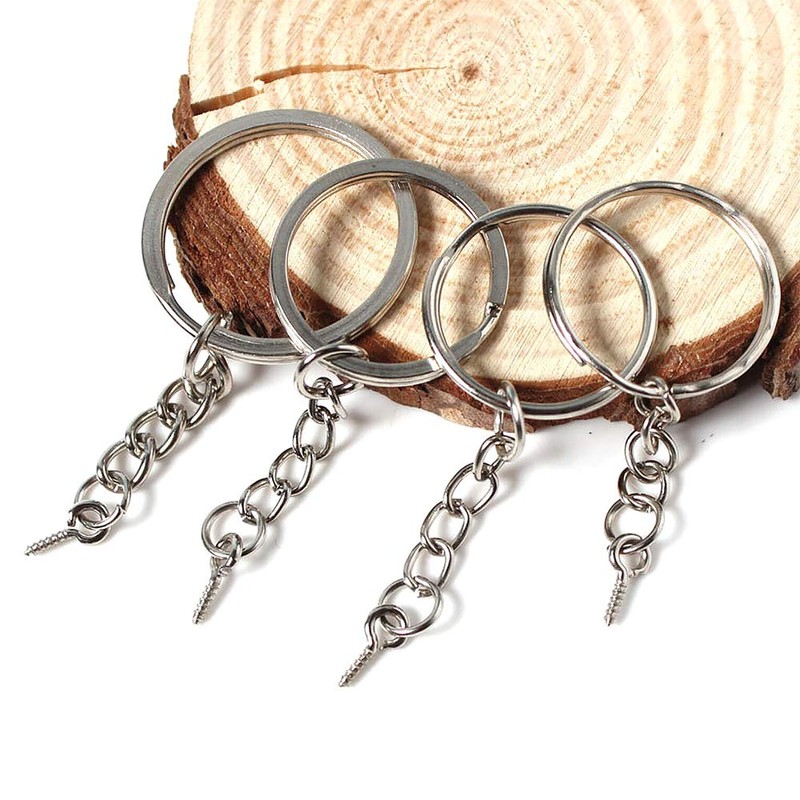 Homo Trends 100Pcs Keyring Rings Key Chain Split Metal Key Rings with Link Chain and Open Jump Rings and Screw Eye Pins for Crafts, 25 mm Diameter