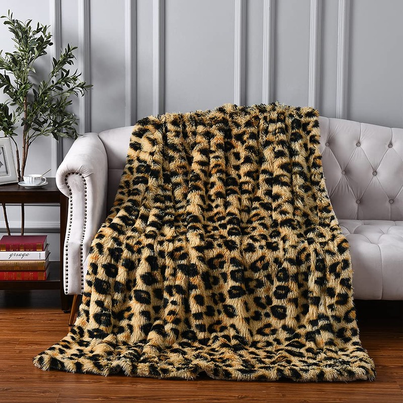 HOMORE Fluffy Leopard Blanket, Plush Cheetah Print Throw Blankets Soft Faux F...