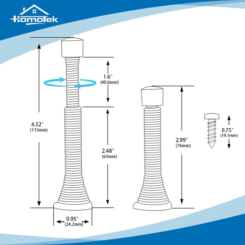 - Sleek, Modern Aesthetic: Enhance your decor; these telescoping spring door stoppers not only offer practical benefits but also add a sophisticated touch to your home. Their design complements finishes, blending seamlessly with your existing decor while maintaining a stylish appearance.