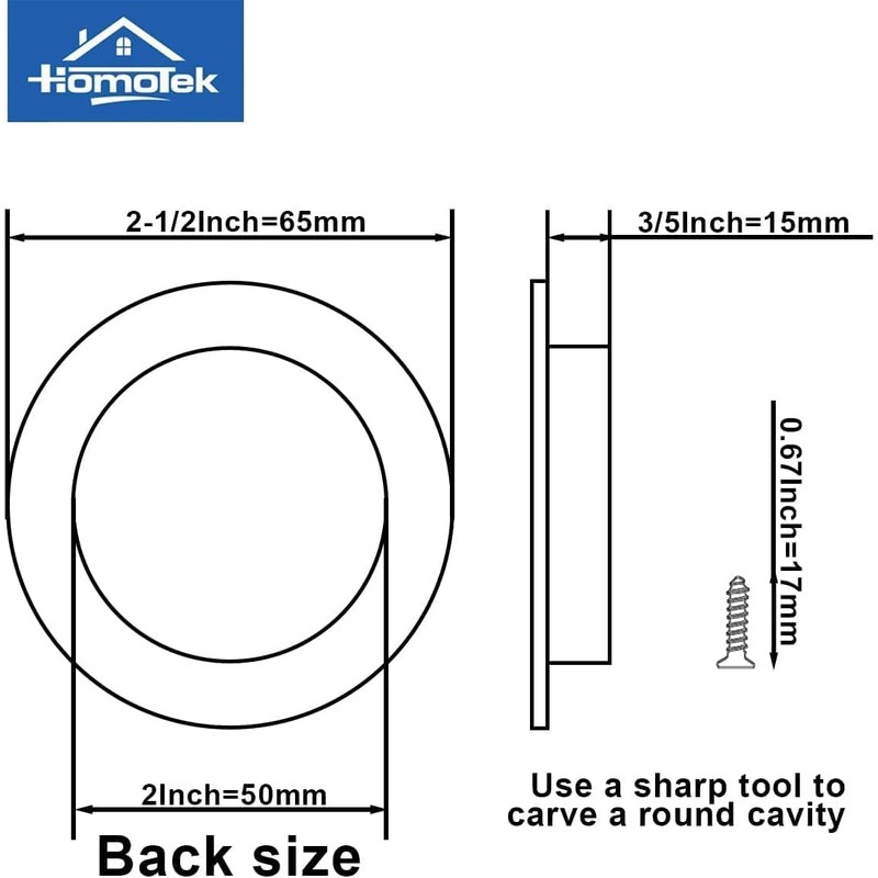 HOMOTEK 2 Pack Round Sliding Closet Door Handles Diameter 2-1/2 in(65mm) Brus...