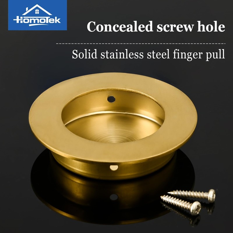 HOMOTEK 2 Pack Round Sliding Closet Door Handles Diameter 2-1/2 in(65mm) Brushed Gold Flush Pocket Pulls Recessed Bypass Door Handles, Stainless Steel Barn Door Finger Pull Set