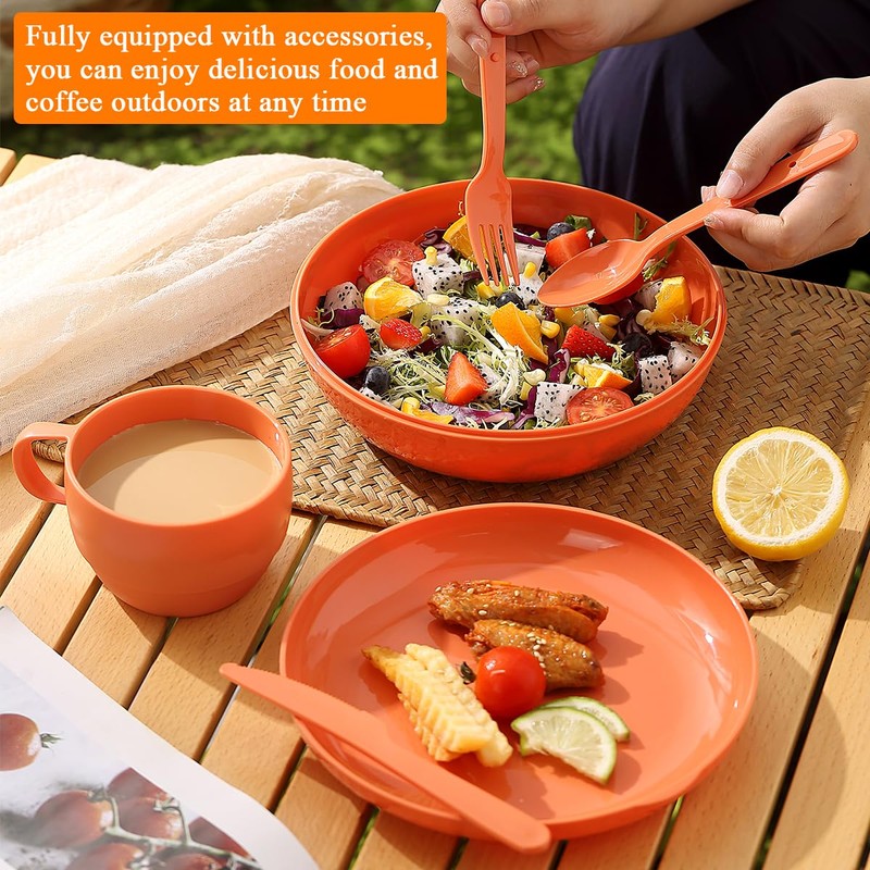 Homquen 6-Piece Camping Mess Kit with Bowl, Plate, Cup, Spoon, Fork, Knife an...