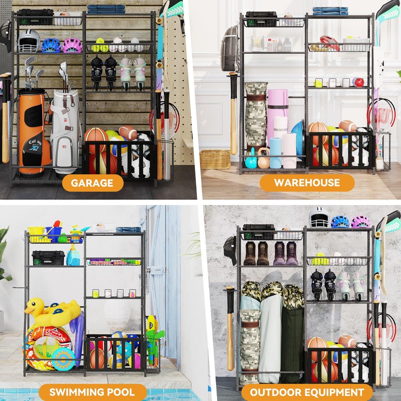 - ๐๐ฎ๐ฅ๐ญ๐ข ๐ฌ๐๐๐ง๐๐ซ๐ข๐จ ๐ฎ๐ฌ๐: This garage sports equipment organizer is suitable for your garage, warehouse, bedroom and other places. It can not only store sports equipment, toys, but also outdoor equipment, fitness equipment, clothing, etc