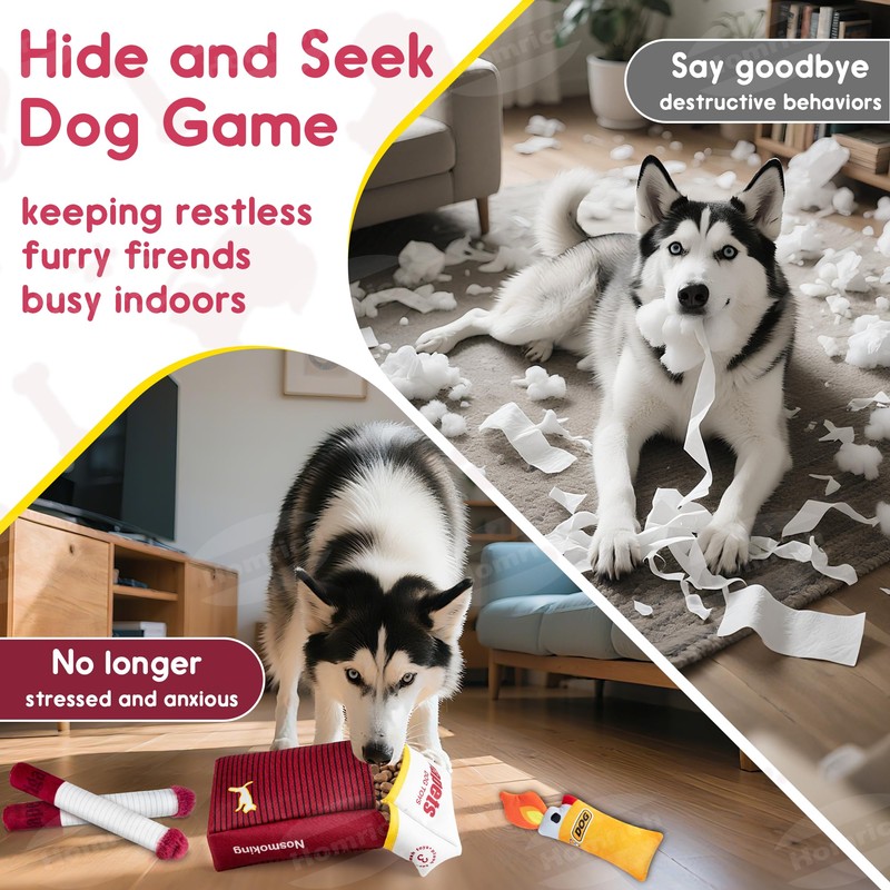 - 【Value Set with Hidden Training Fun】 includes a dog toy case and three squeaky toys. This dog toy chewing pack offers a fun hide-and-seek treat feature that turns play into a rewarding experience, perfect for high-energy and curious dogs.
