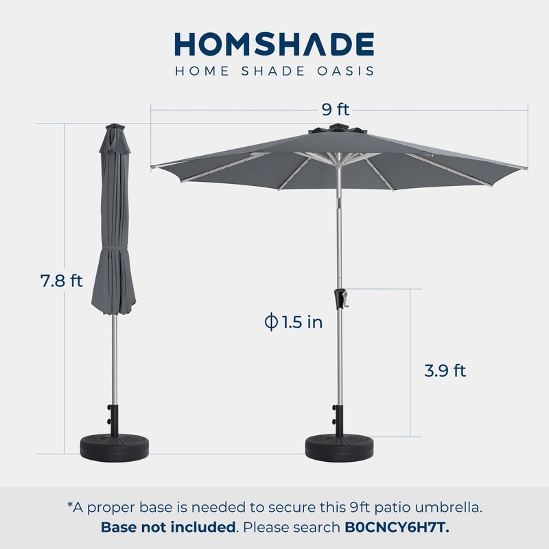 HOMSHADE 9ft Aluminum Solar Patio Umbrella - Rustproof Sturdy, Outdoor Table Market Pool Umbrella w/ 5-year Fade Resistance, UPF50+, Zinc Alloy Push Button Tilt and Crank for Garden,Deck(Grey)