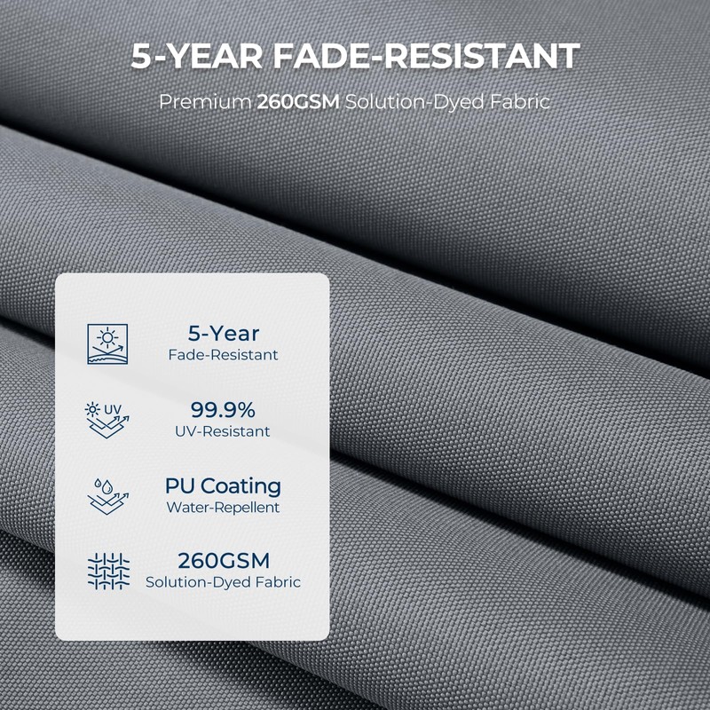 - HIGH-QUALITY MADE:1)260GSM solution-dyed polyester canopy provides UPF50+, 5 year fade-resistant,water resistance, ideal for outdoor. 2)Zinc alloy tilting joint with 2x tensile strength and 1.5x hardness to avoid fracture and deformation.3)20% thicker(18x12mm) ribs provide superior stability,can withstand 30 MPH Wind-Resistant.