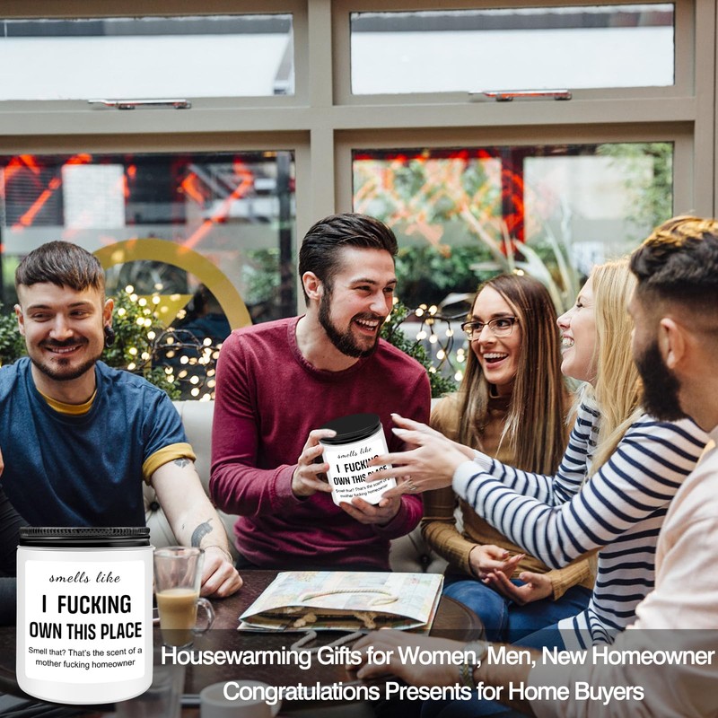 - House Warming Gifts: Home Gifts: Smells Like I ****ING OWN THIA PLACE - the perfect way to welcome new homeowners with a touch of humor. Funny slogans full of blessings, perfect housewarming gifts for new homeowners, family, friends, colleagues, sisters, brothers, ladies, men, to express your congratulations to him