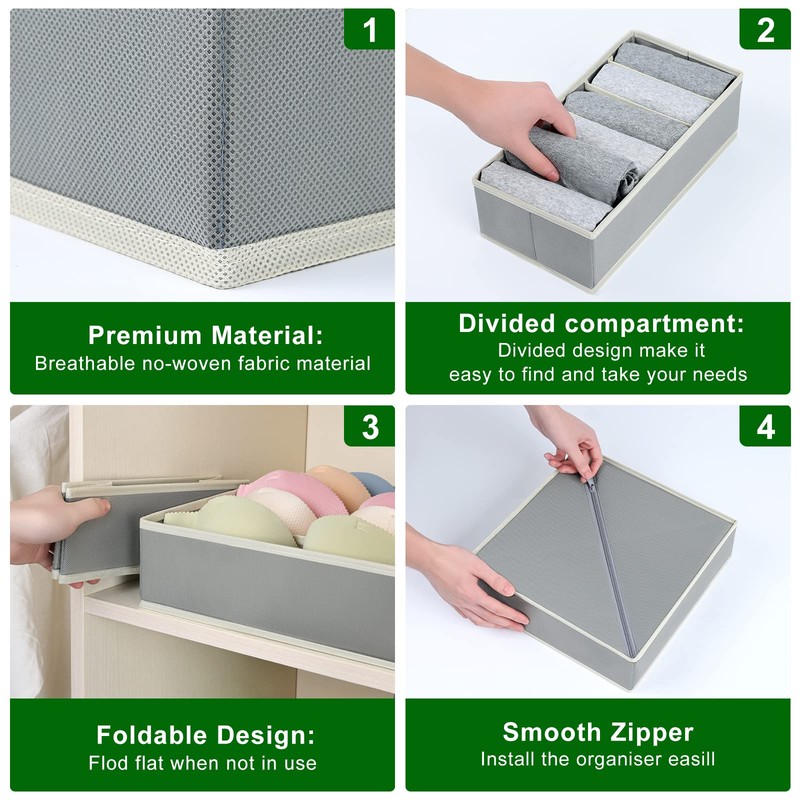 - 【Simple Assemble & Foldable Design】Homsorout underwear drawer organiser is collapsible, Lightweight for easy carrying.Feature with zipper design,so that you can assemble the box just by pull the zipper. when not in use the drawer organizer won't occupy your extra space, increasing space utilization.