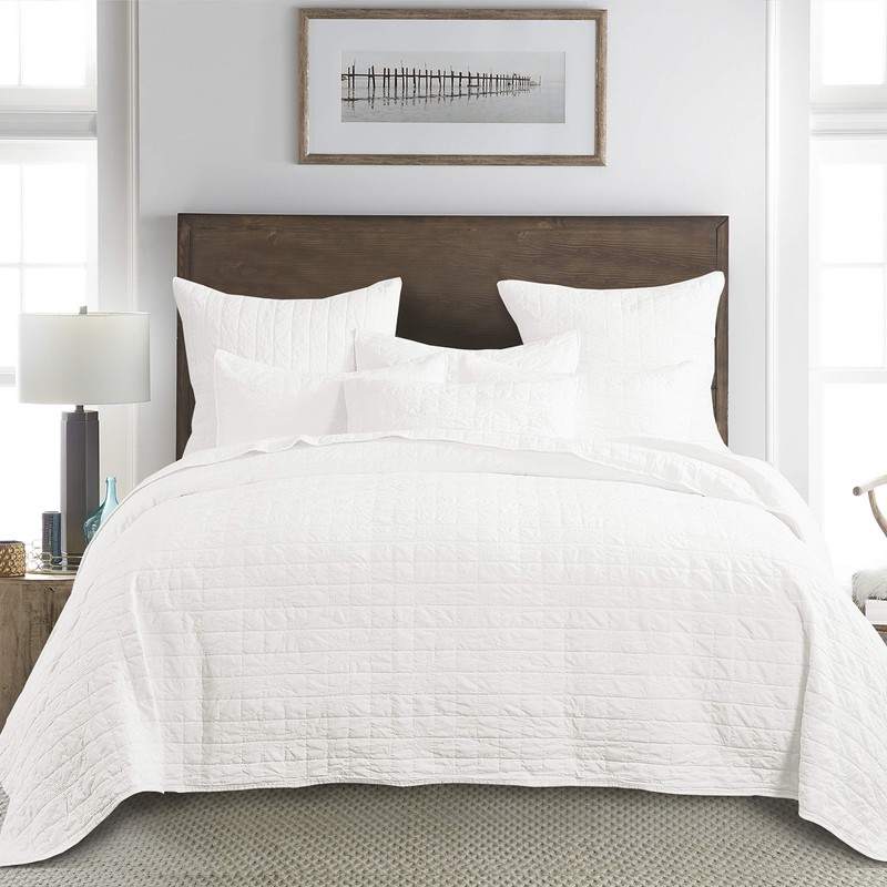 - HOMTHREADS BOWIE BED SET: A solid jacquard with subtle geometric floral quilted bedspread set consisting of a King size bedspread (120 x 118 in.) and two matching pillow shams (36 x 20 in.). Used by itself or as a layering piece this bedding set is extremely versatile.