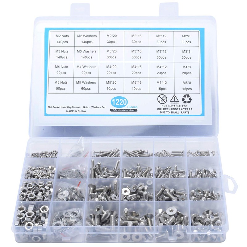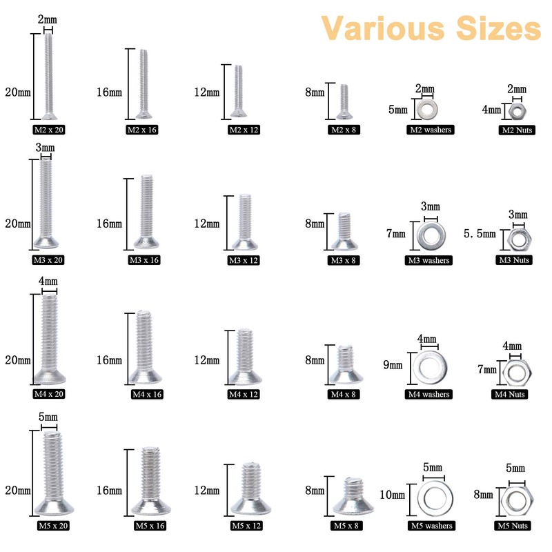 - Multiple Sizes 1220pcs M2 M3 M4 M5 16 sizes of hex bolts, screws, nuts and washers. Meet the different needs of your family life. Perfectly replace damaged and missing screws.