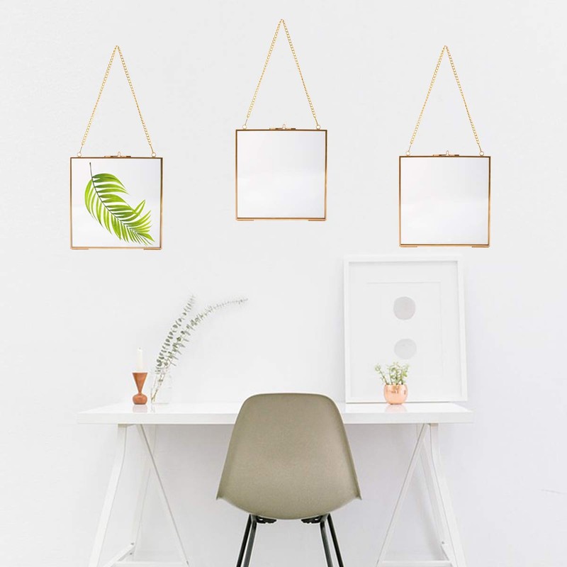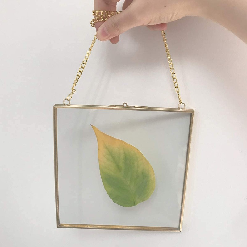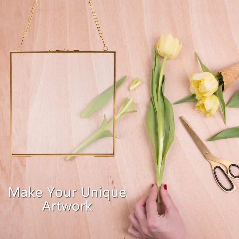 Homtone 16 x 16 cm Glass Frame for Wall, Floating Display Frame, Hanging Glass Photo Frame, Pure Copper Press Glass Frame for Flowers Pattern Plants, Photo DIY Artwork