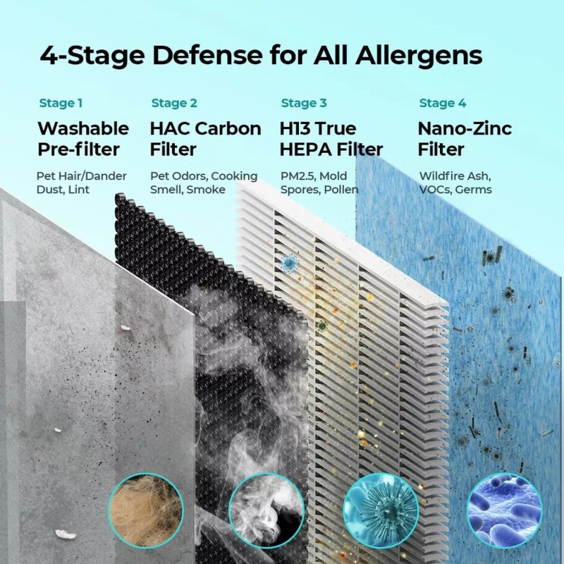 Homvana Smart Air Purifiers for Home Larger Room Bedroom Up to 1250 Sq Ft, H1...