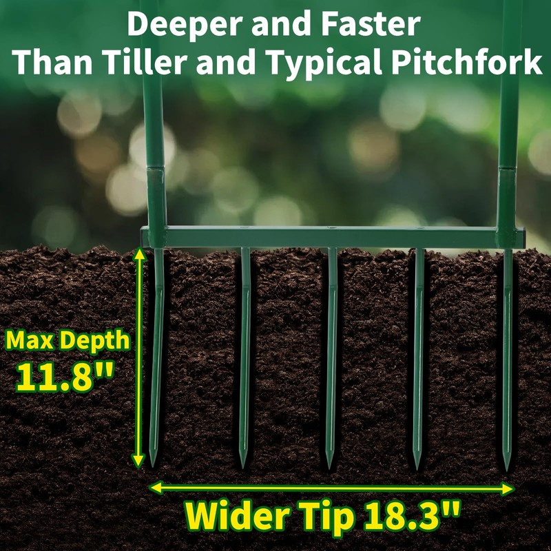 - 【Efficient Soil Aeration】 The broadfork goes deeper than the tiller and does not create compacted soil at the bottom of the tilled area. It's perfect for loosening and aerating compacted soil, improving drainage and preparing garden beds for planting.