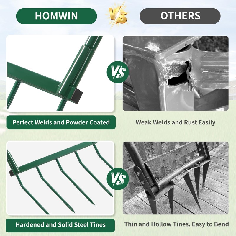 Homwin Broadfork Garden Tool with Steel Handle Heavy Duty Five Tines Broad Fork for Gardening Loosening and Aerating Soil, U-Shaped Design Hand Tiller, Compost Turner and Aerator