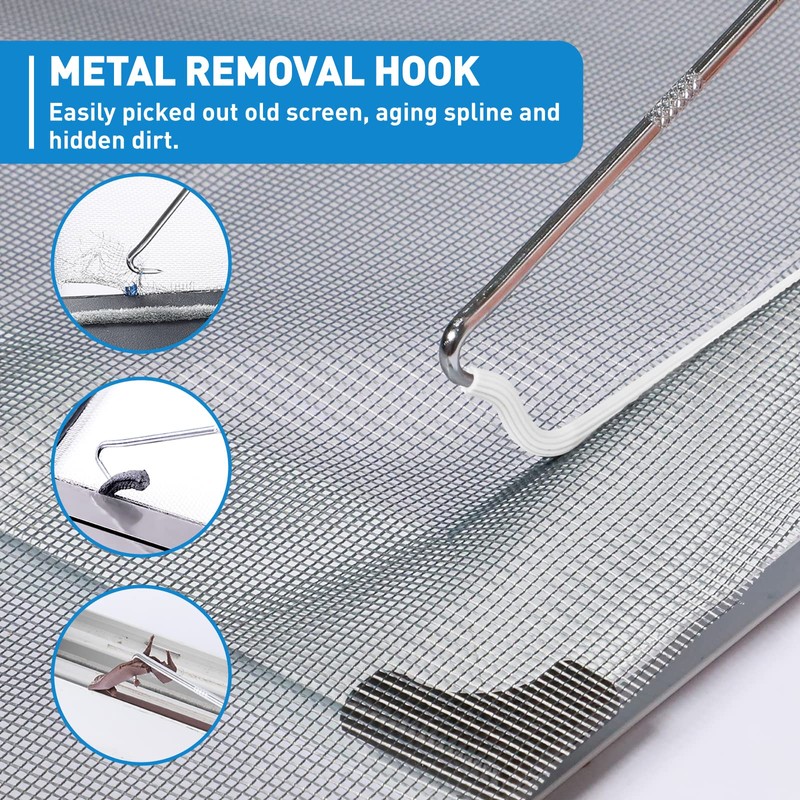 - Spline Removal Hook and 32ft Spline: The hook can be used for any small job that may be required, pulling out things that are not easily accessible with screw drivers or fingers-like easily hooking out the old screen, aging retainer spline. Spline for window screen can secure screen into frame channel, very easy to use