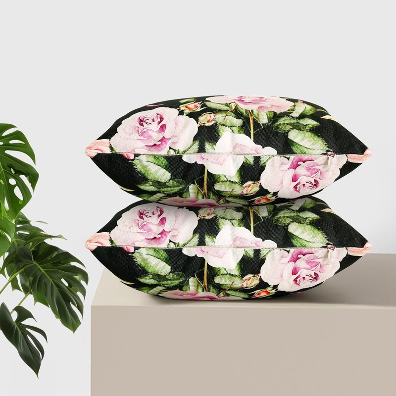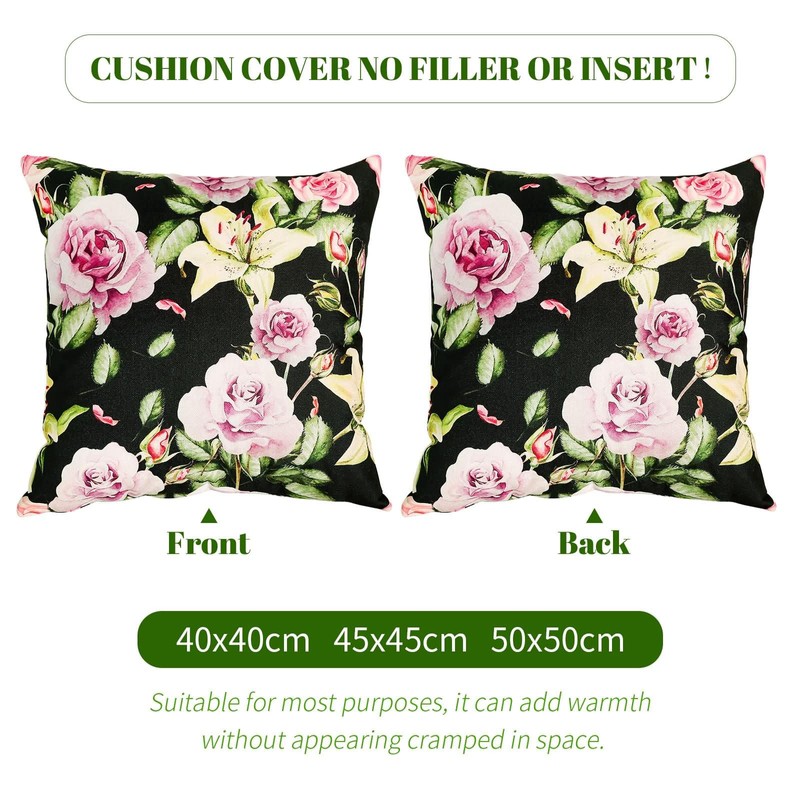 Homxi Cushion Covers 18 x 18in Pack of 2,Pink Green Black Floral Throw Pillow Covers Waterproof Linen Double Sided Bed Decorative Pillows
