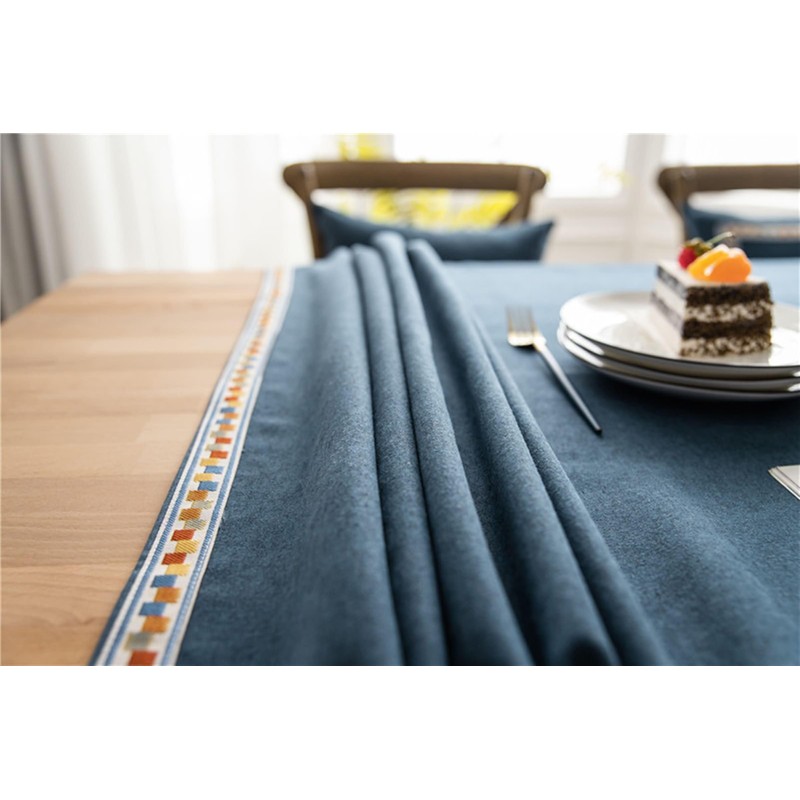 Homxi Rectangular Outdoor Tablecloth 130 W x 180 L cm, Outdoor Tablecloth Blue Plain with Embroidered Border Cotton Linen Table Linen Table Linen Table