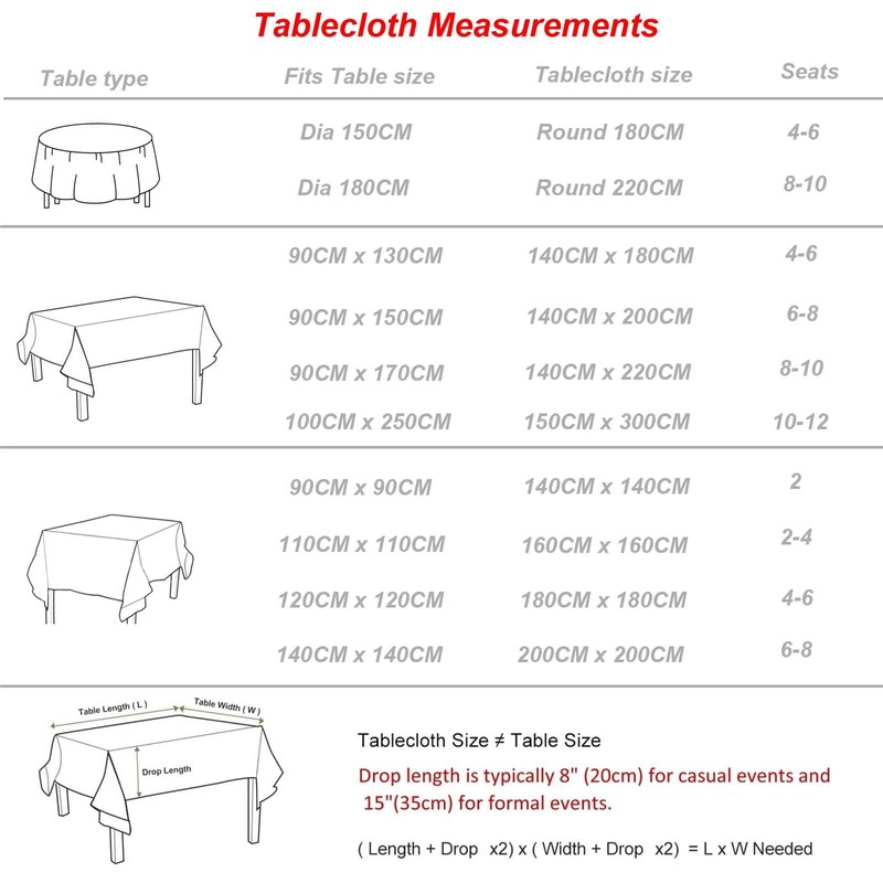 - ♥"Homxi"♥ 【80 W x 120 L CM / 31 W x 47 L"】 The size of the table is not the same as the size of the tablecloth. Choose a tablecloth that is larger than the size of the table.