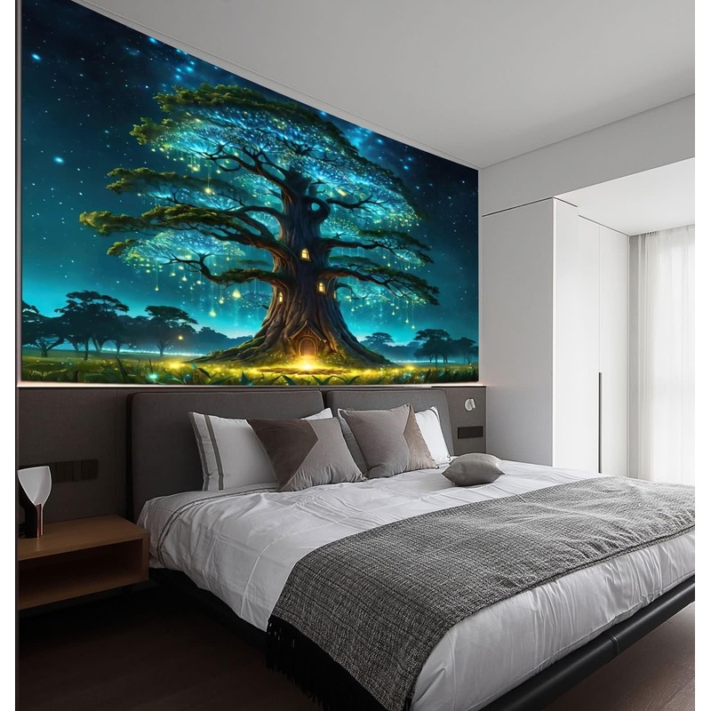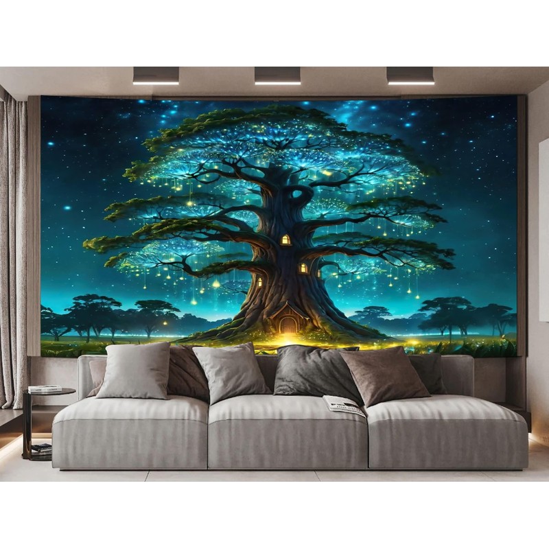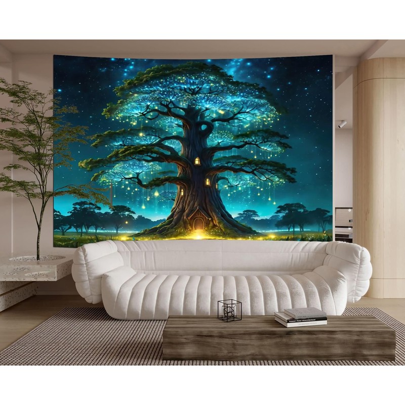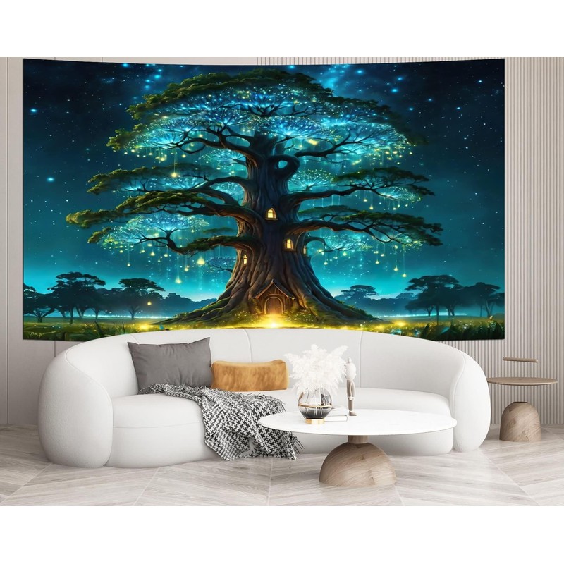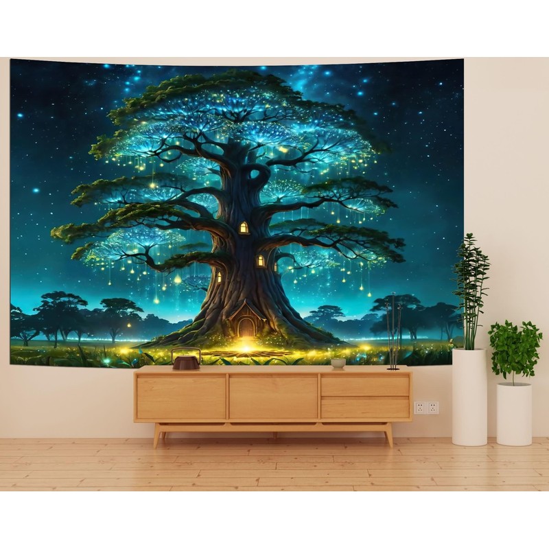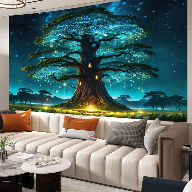 Homxi Tapestry Forest Tree 200 x 200 cm, Tapestry Forest Starry Sky Room Decor Tapestry, Wall Hanging, Green