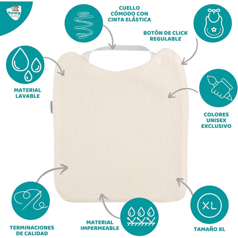 - Washable and reusable: easy to wash in the washing machine and ideal for everyday use. Sustainable alternative to disposable bibs.
