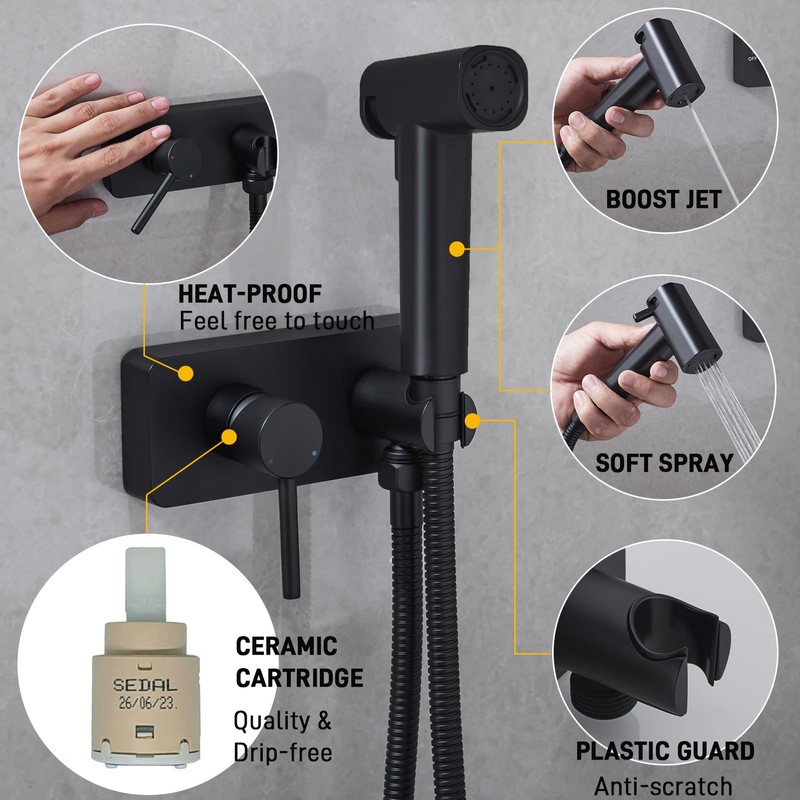 - MATTE BLACK TOILET BIDET SPRAYER: Meticulous matte black finish bidet sprayer for toilet, color match with other black color bathroom fixtures, quality plated surface to keep away from corrosion and tarnishing