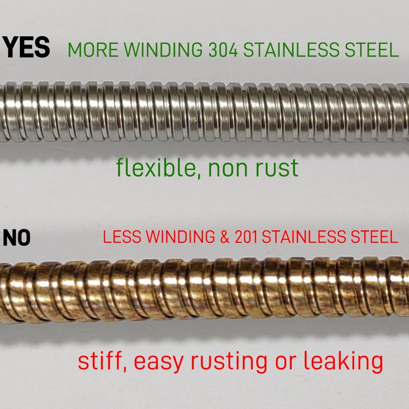 - Flexible kink-free shower hose with non rust stainless steel exterior and EPDM inner, resist high water pressure, high temperature and tarnishing in daily use