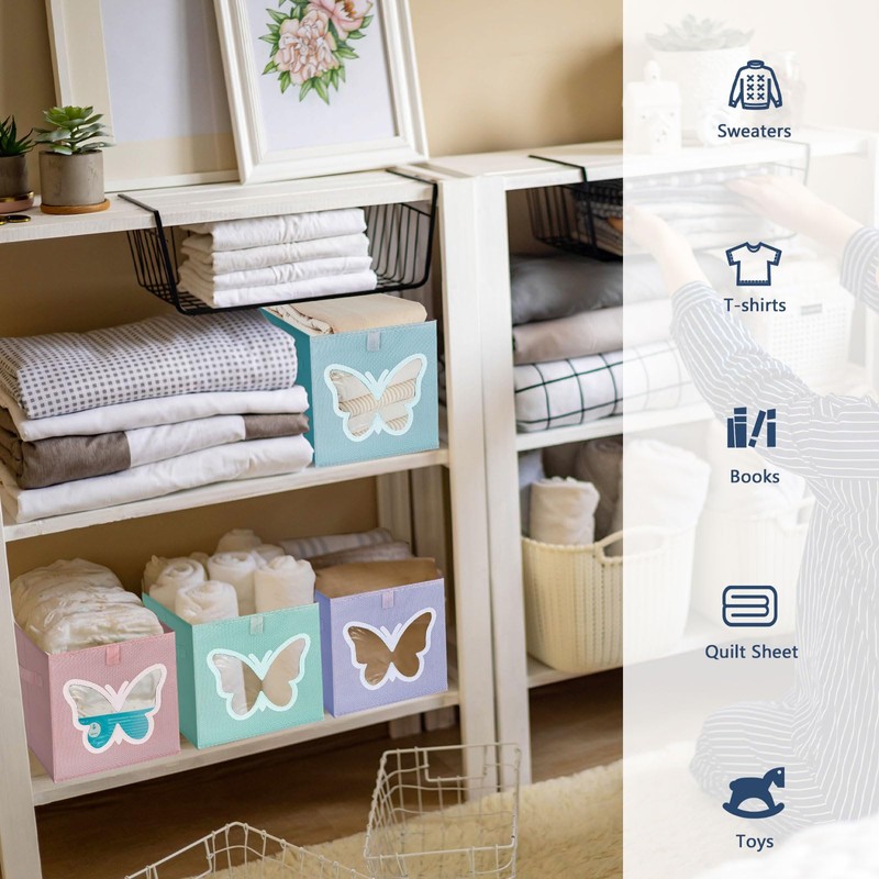 homyfort Cube Storage Bin - Fabric Storage Cubes, Collapsible Clothes Storage Basket, Shelf Organizer Bins with Clear Window for Toy, Clothes, Room Set of 4, 11 x 11