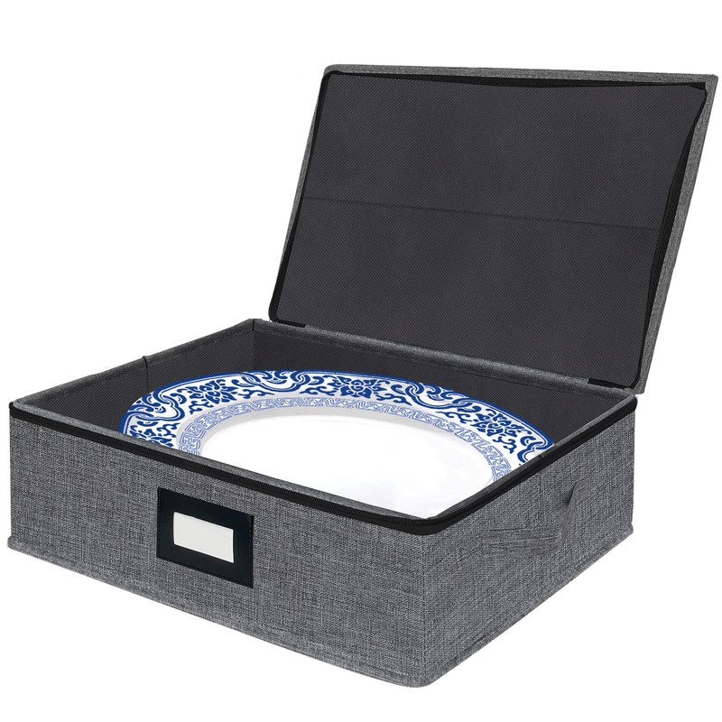 homyfort Platter Storage Case - Stackable China Storage Containers Hard Shell with Durable Zipper & Label & Sturdy Handles, 5.3” Height, Structured Top, 4 Felt Dividers Included (Dark Gray)